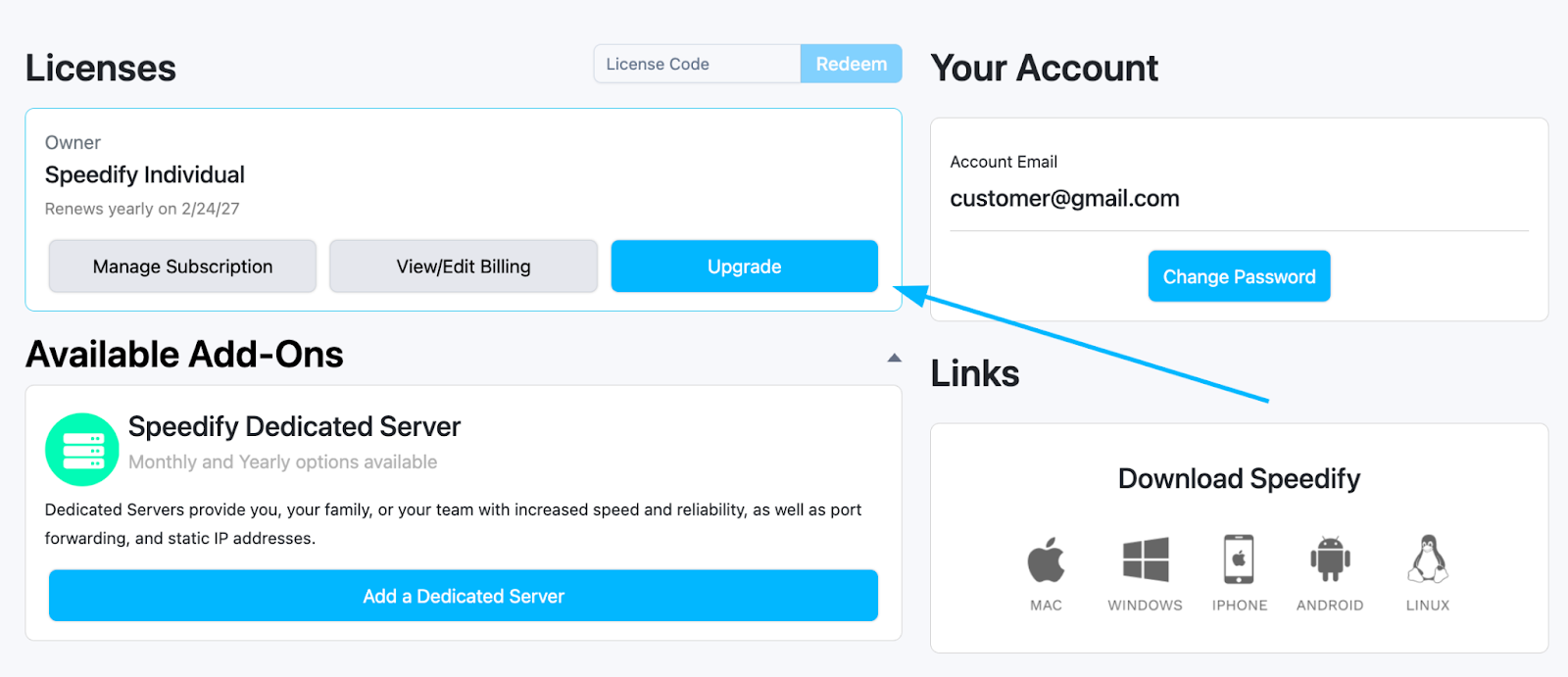 This article is for customers who purchased their Speedify subscription through the Speedify website and not the Apple App Store or Google Play Store. To upgrade a subscription made through a mobile store, follow the links below: