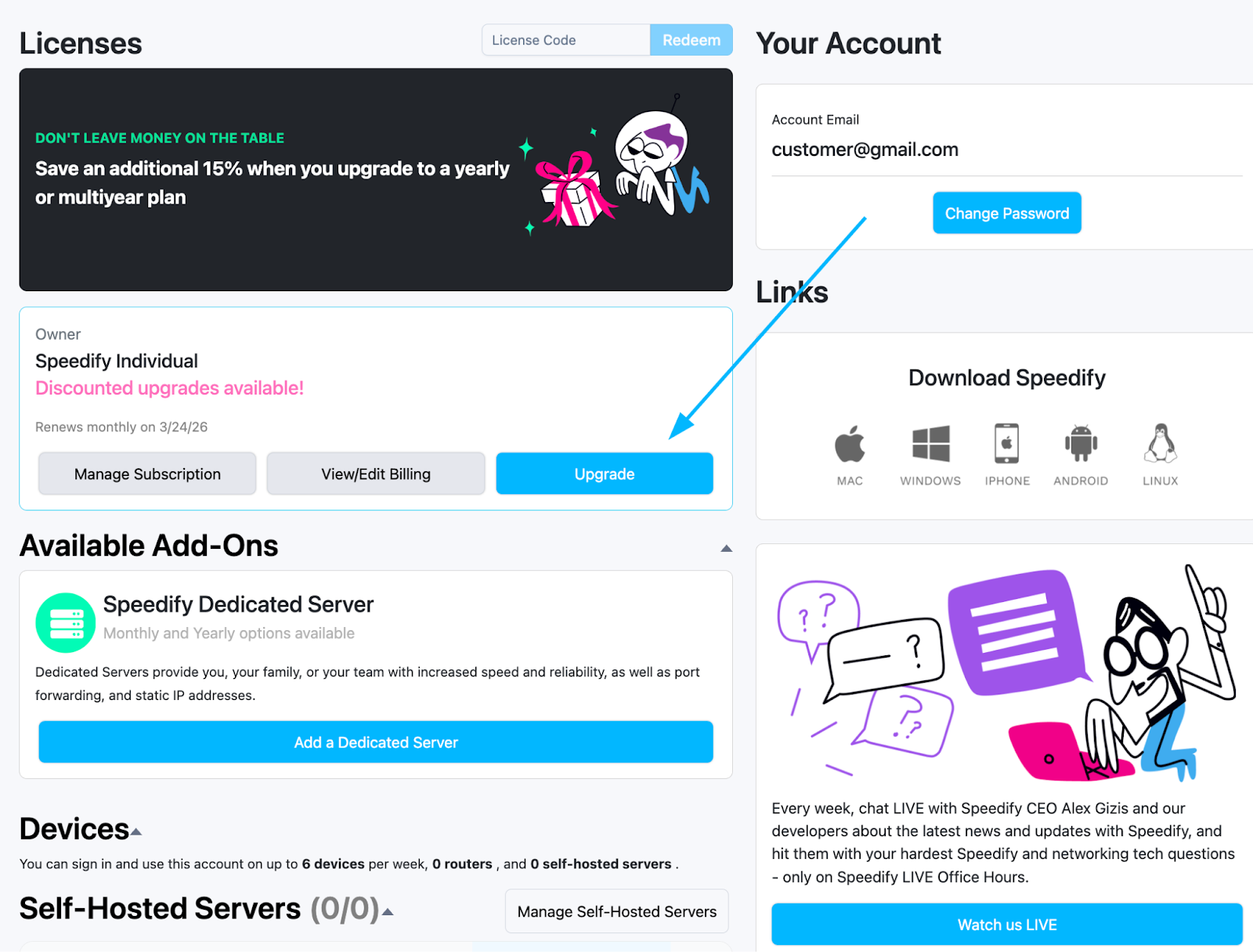 This article is for customers who purchased their Speedify subscription through the Speedify website and not the Apple App Store or Google Play Store. To upgrade a subscription made through a mobile store, follow the links below: