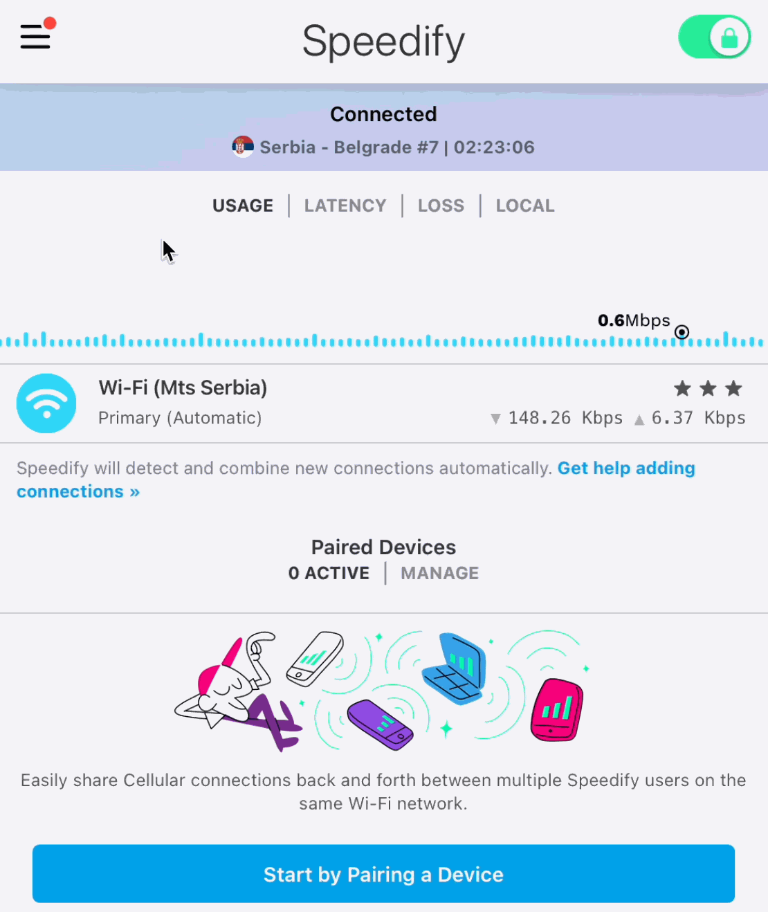 - Toggling the Bypass switch to the OFF position will send all of your traffic through Speedify including the previously Bypassed services - this will cause services that block VPNs to not work correctly.