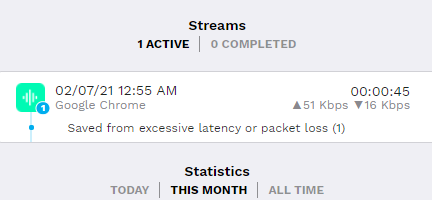 Once Enhance Streaming is active, your current streams will appear at the bottom of your Dashboard. The number shown next to Active tells you how many streams Speedify is detecting right now.