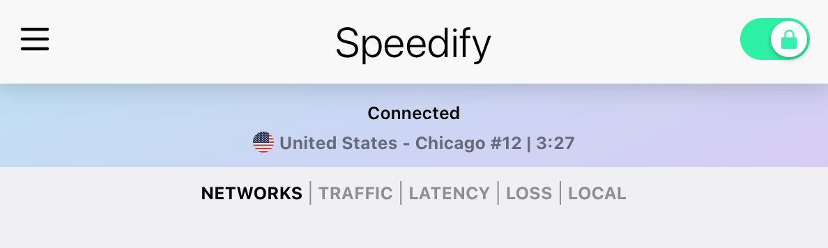 This article explains how you can tell whether Speedify is connected on your device and confirm that your Internet traffic is going through Speedify, both from your phone's status bar and from within the Speedify app.